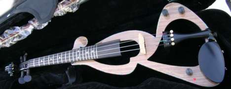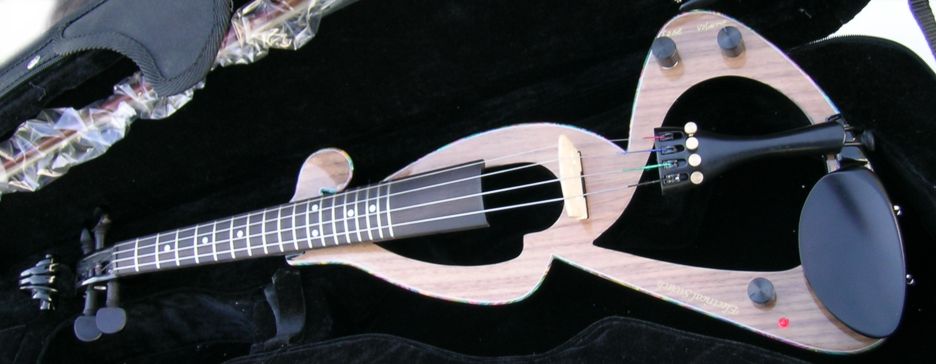 18 frets on an ebony fingerboard Maple neck and pegs Walnut finish M0P fret markers 1/4" output jack 1/8" headphone jack built in transducer and preamp volume and tone controls Red Label strings alloy tailpiece with fine tuners headphones for quiet practice! ...includes a case, bow and rosin!