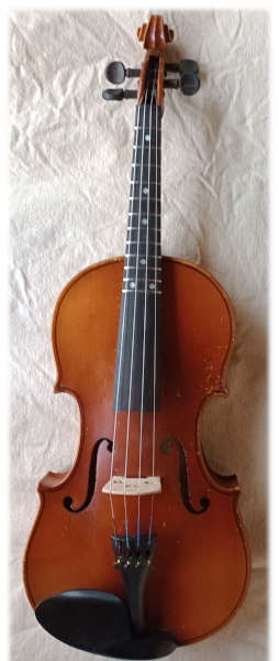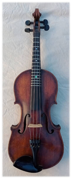 12 frets on an ebony fingerboard probably German or Czech circa early 1900's dings and scratches and an old stable repair the old ebony pegs are very responsive new alloy tailpiece with fine tuners $469_ |
