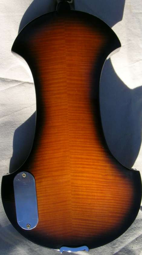 24 Frets on an ebony fingerboard 5 mop and abalone shell fret markers Solid flamed maple construction Ebony pegs with inlay Alloy tailpiece with fine tuners Passive piezo pickup system 1/4 inch output jack Volume and tone controls includes a case, bow and rosin!